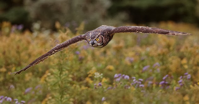 I asked what happened and she explained that they had been walking near their home when they saw an owl sitting on a branch near them. As they walked closer it swooped down low and then landed further down the path, staying ahead of them as they walked. She described a Great Horned owl, she said it was big and it would glide low and incredibly close to the ground as it stayed in front of her and her friend.